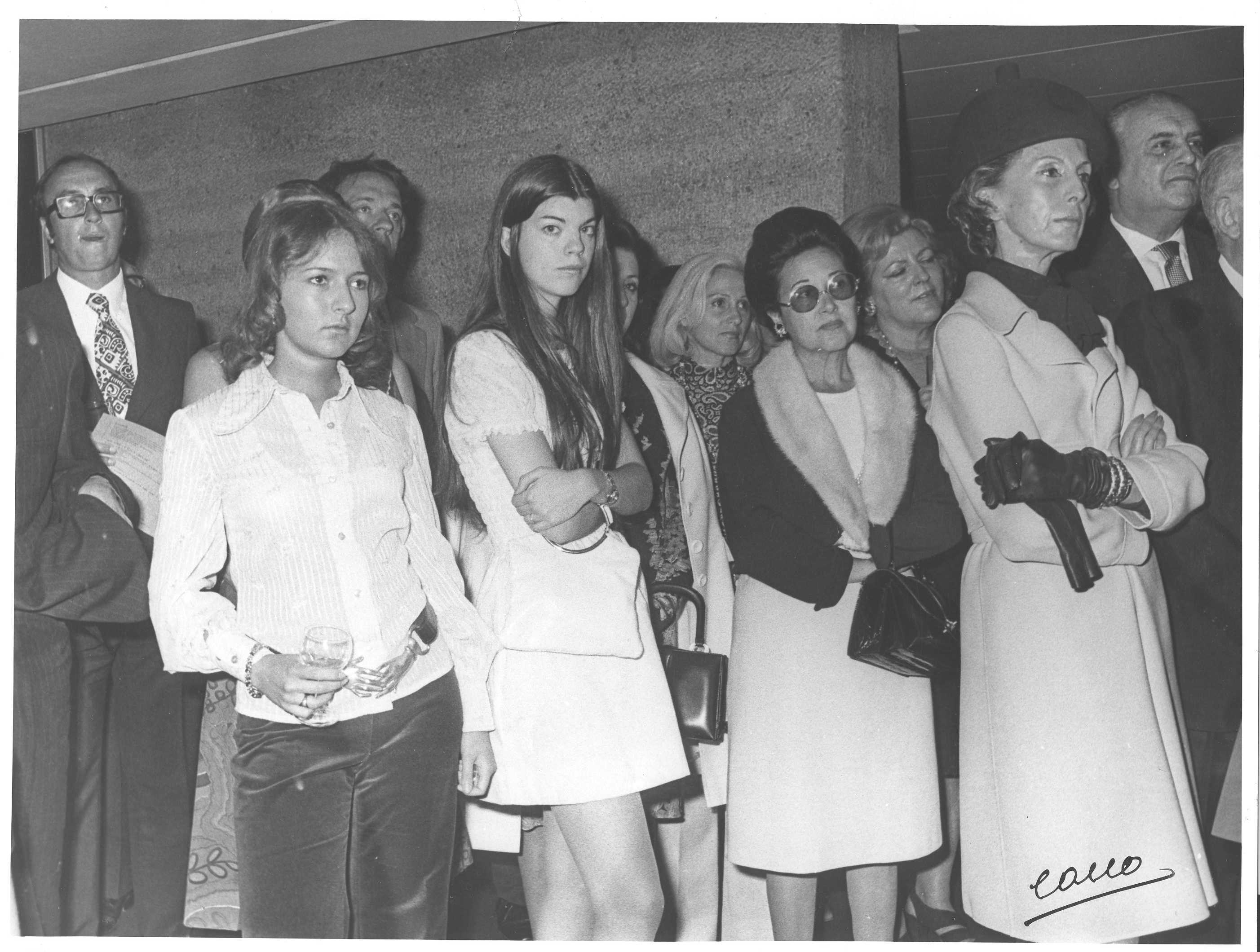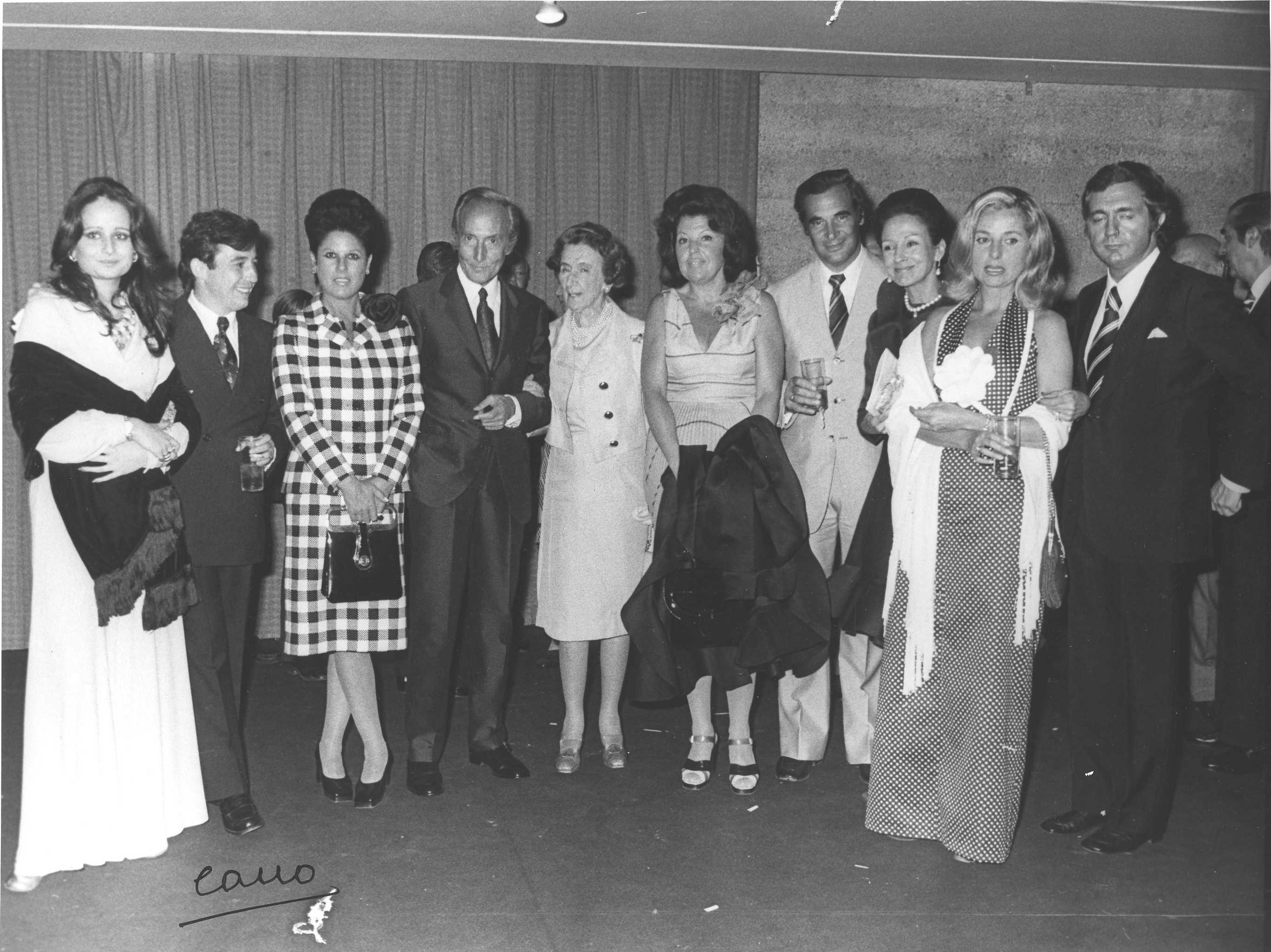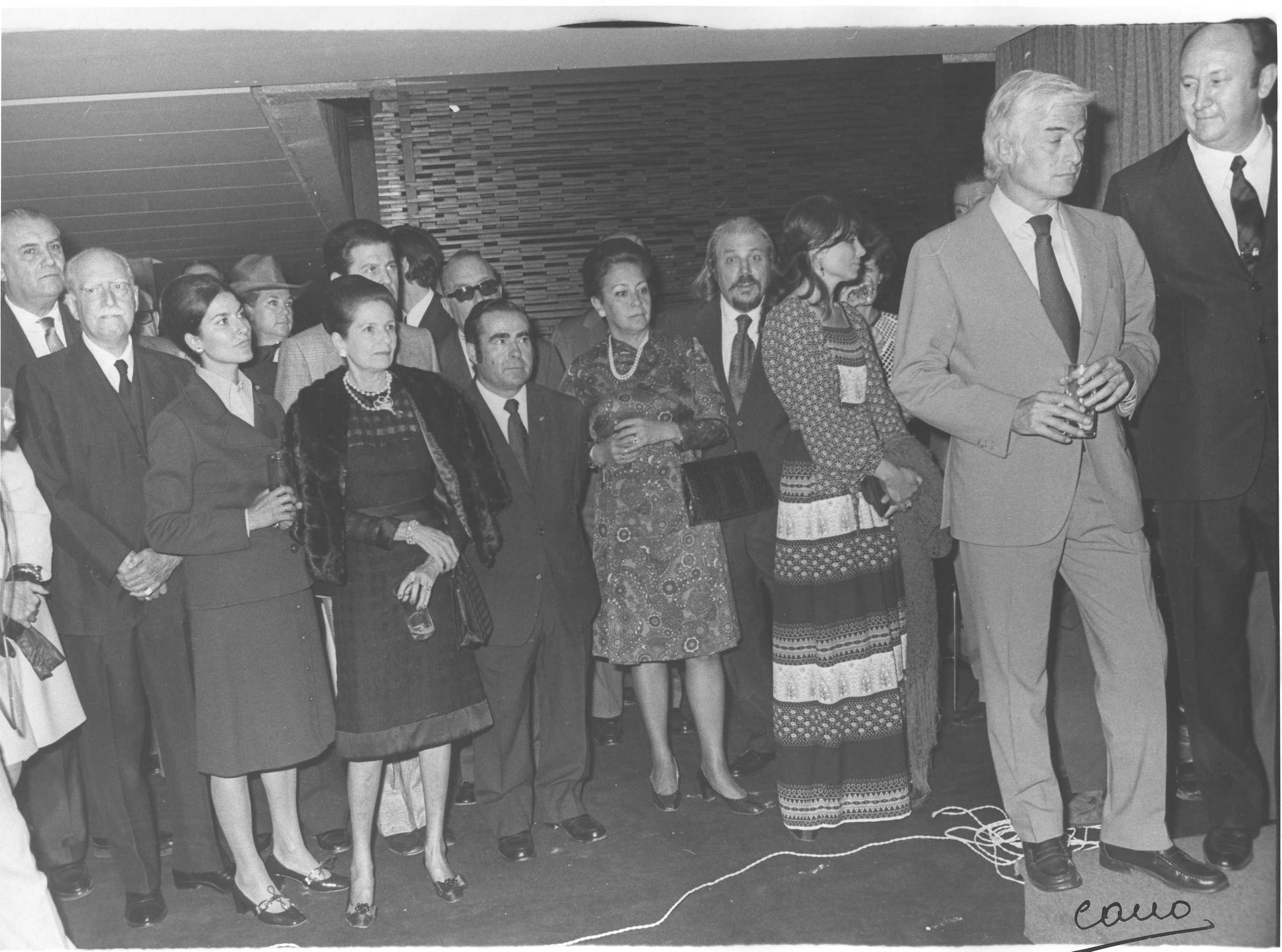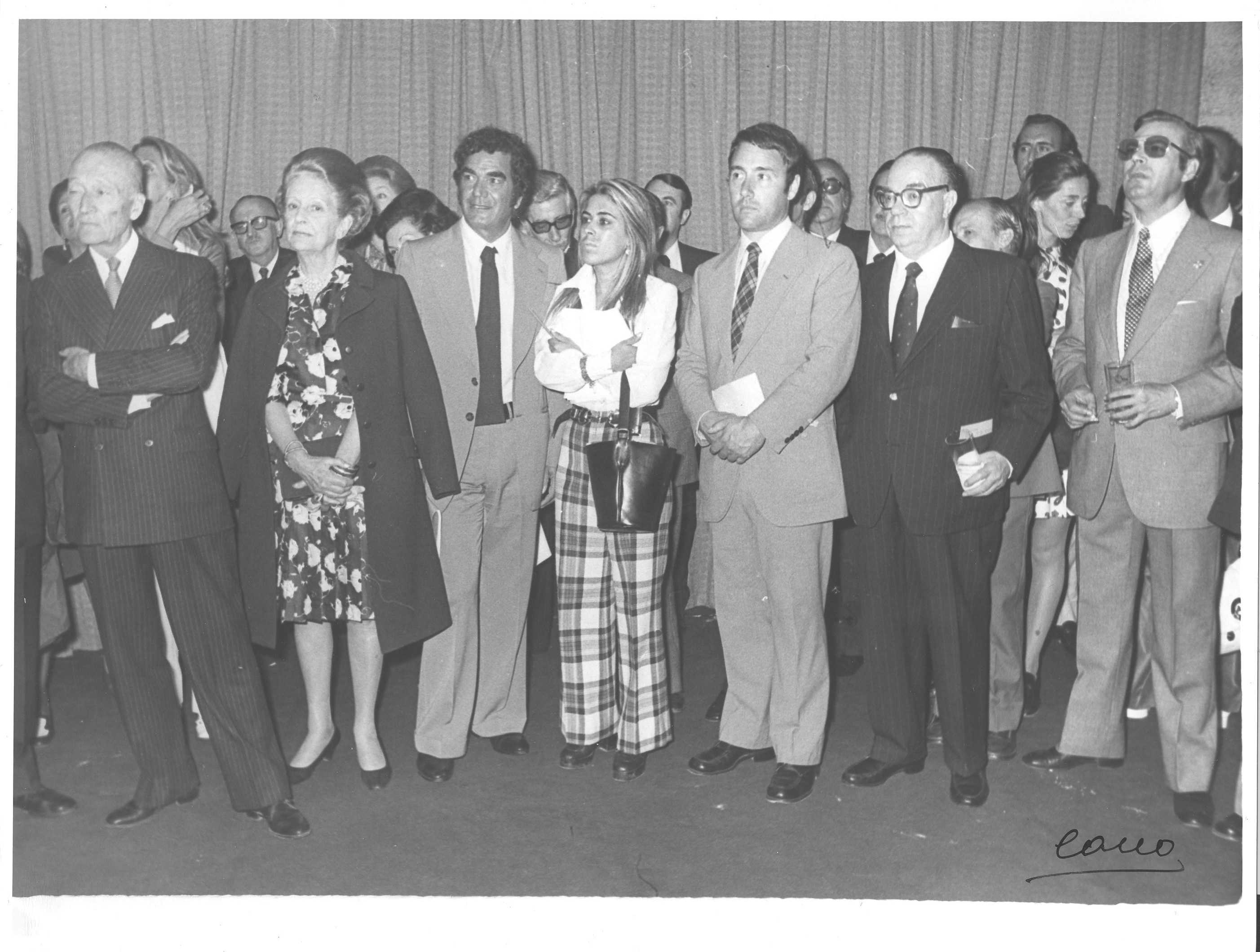 Fotografía de diferentes asistentes durante las celebraciones de la Feria de San Isidro de 1973, a donde viajaba una delegación vasca para la promoción de la Costa Vasca