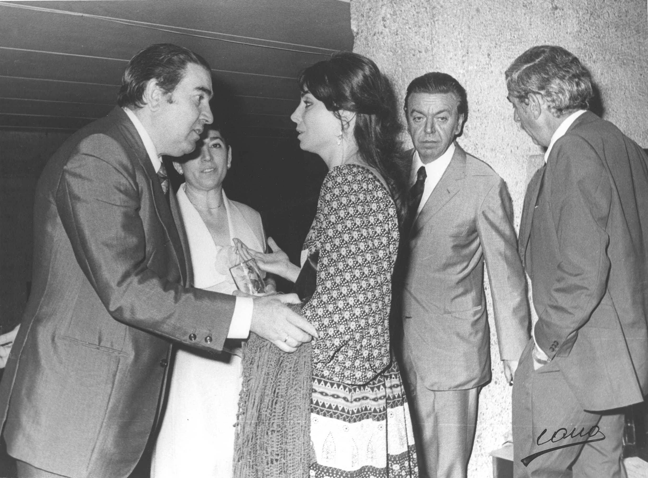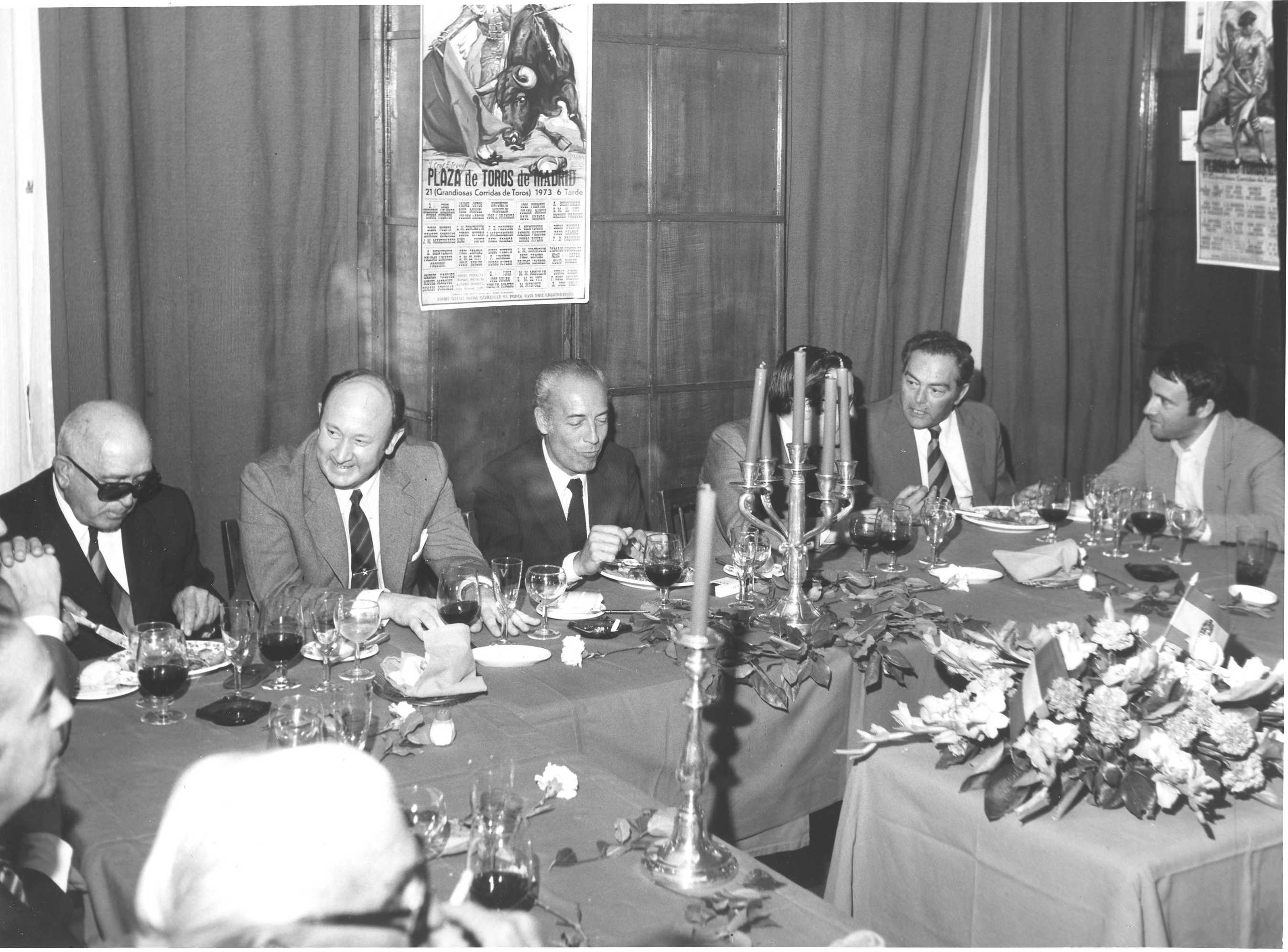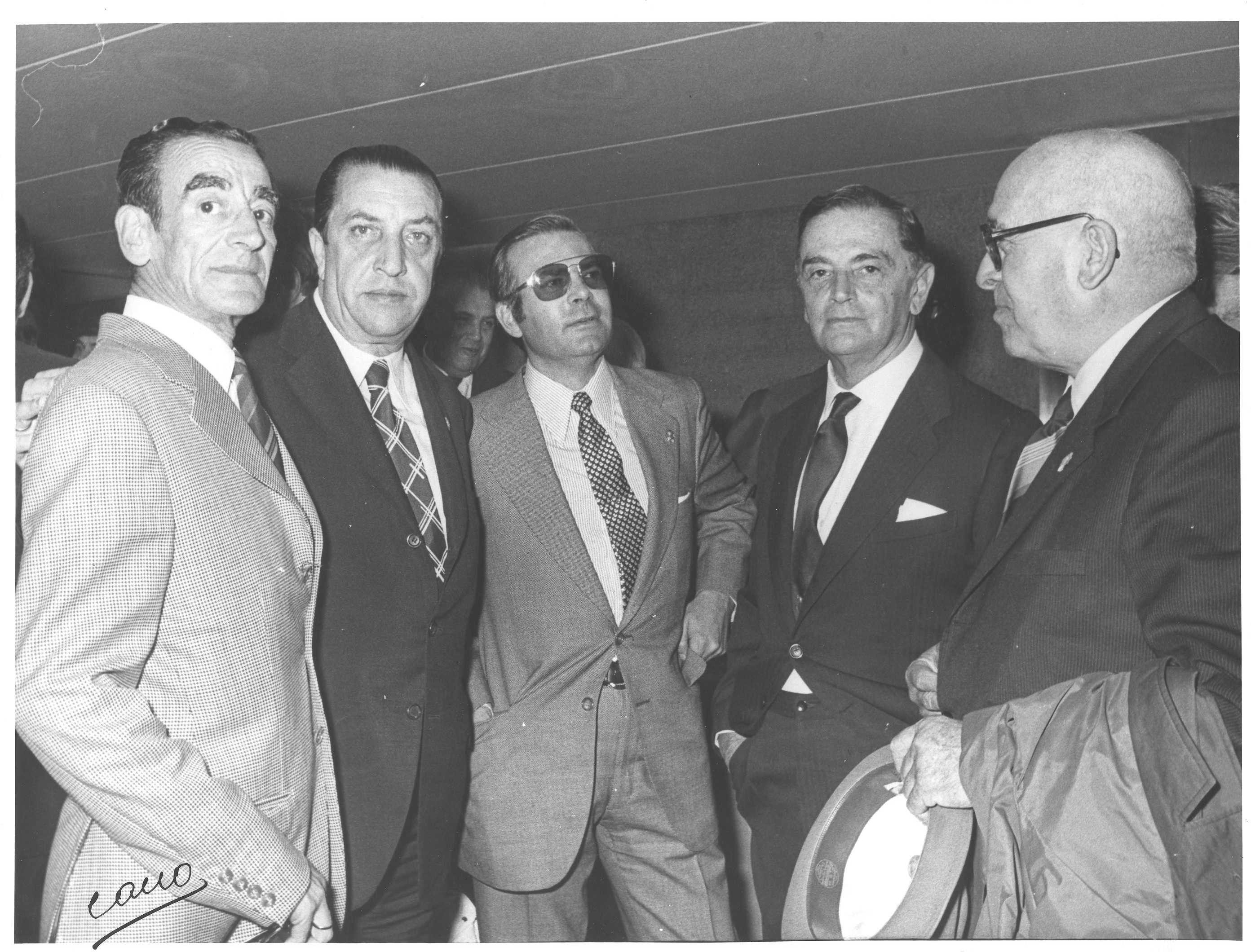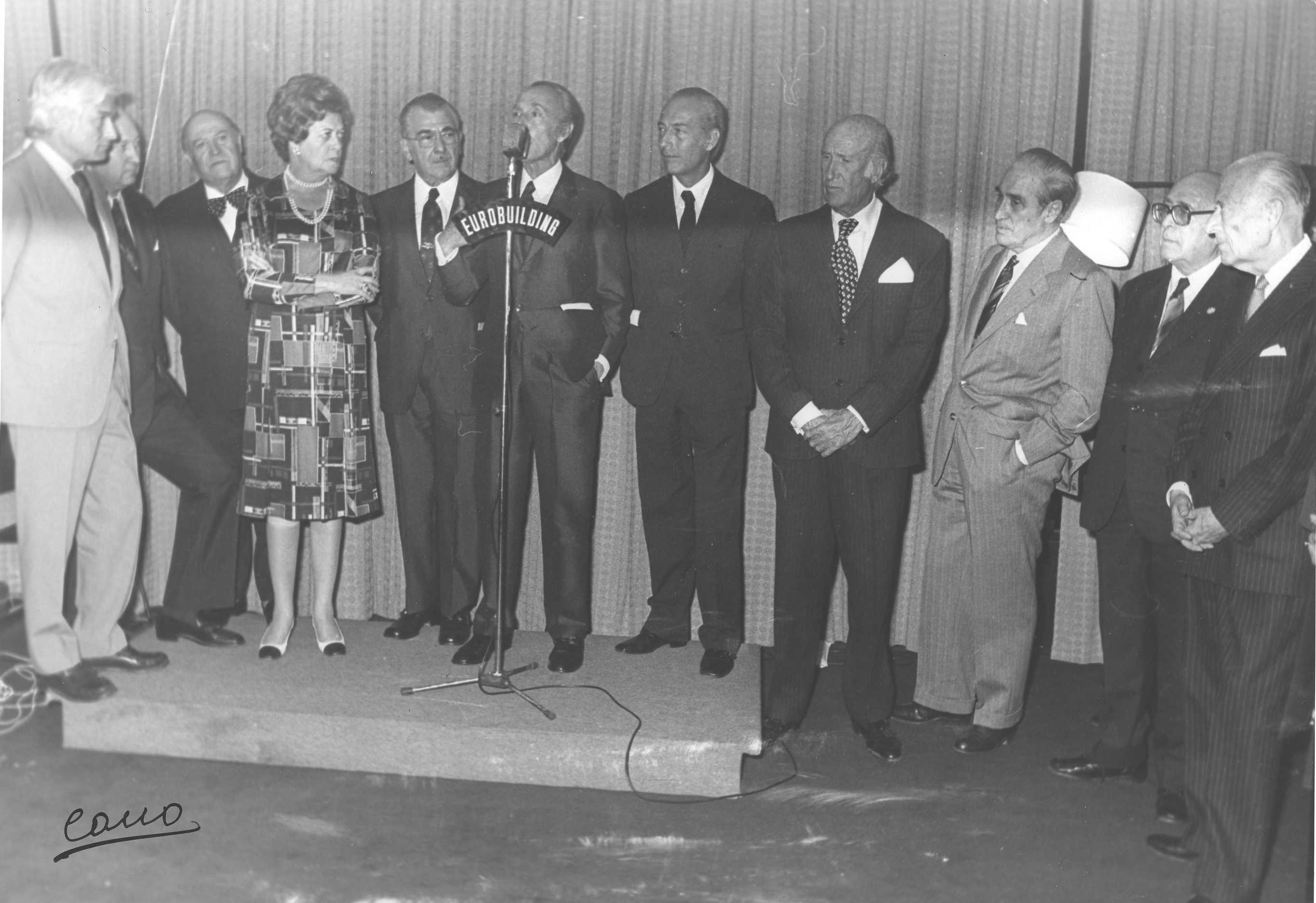Fotografía de diferentes asistentes durante las celebraciones de la Feria de San Isidro de 1973, a donde viajaba una delegación vasca para la promoción de la Costa Vasca
