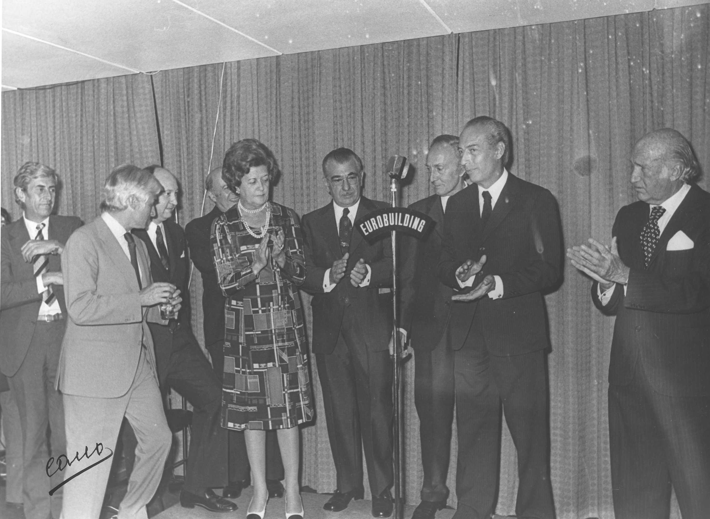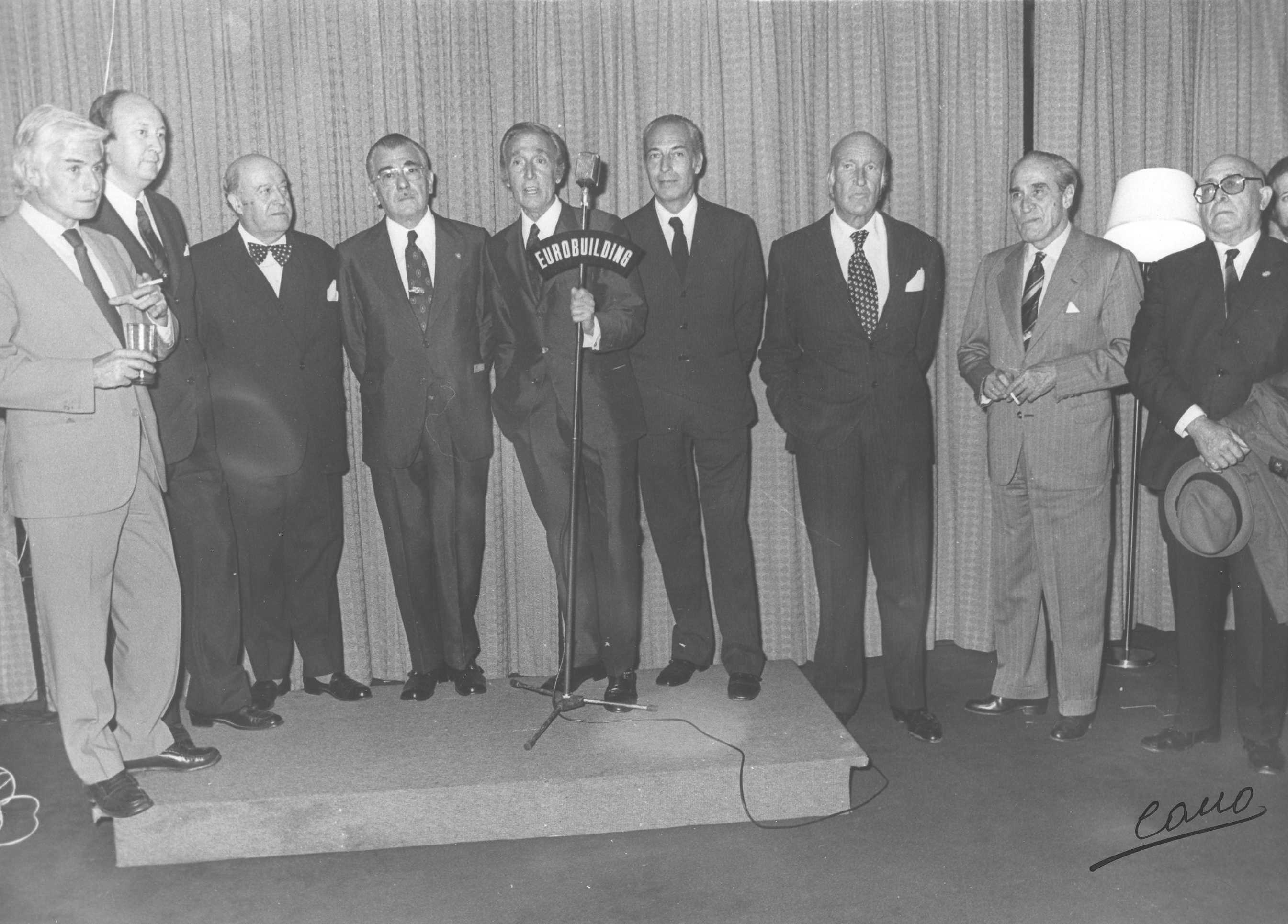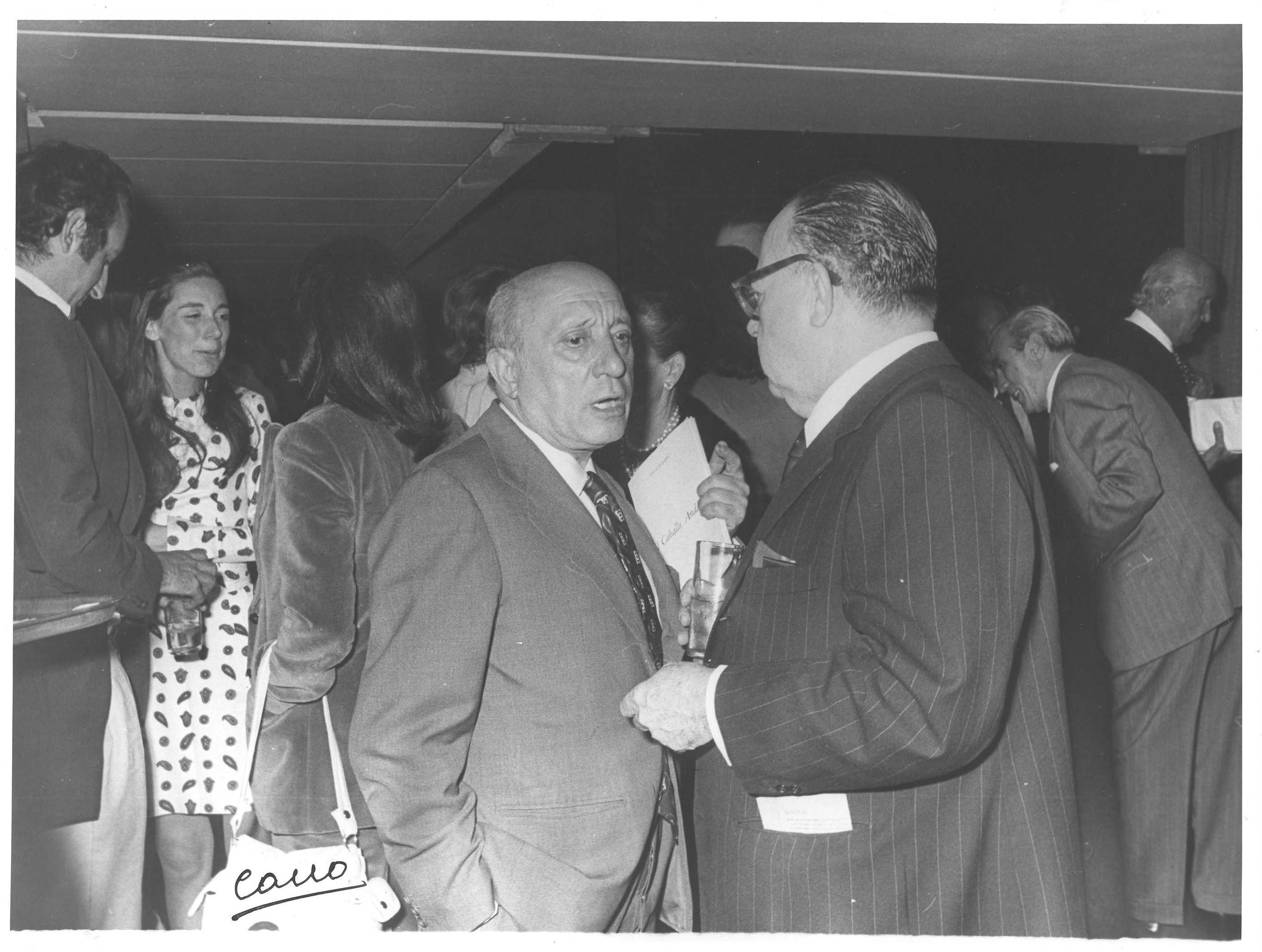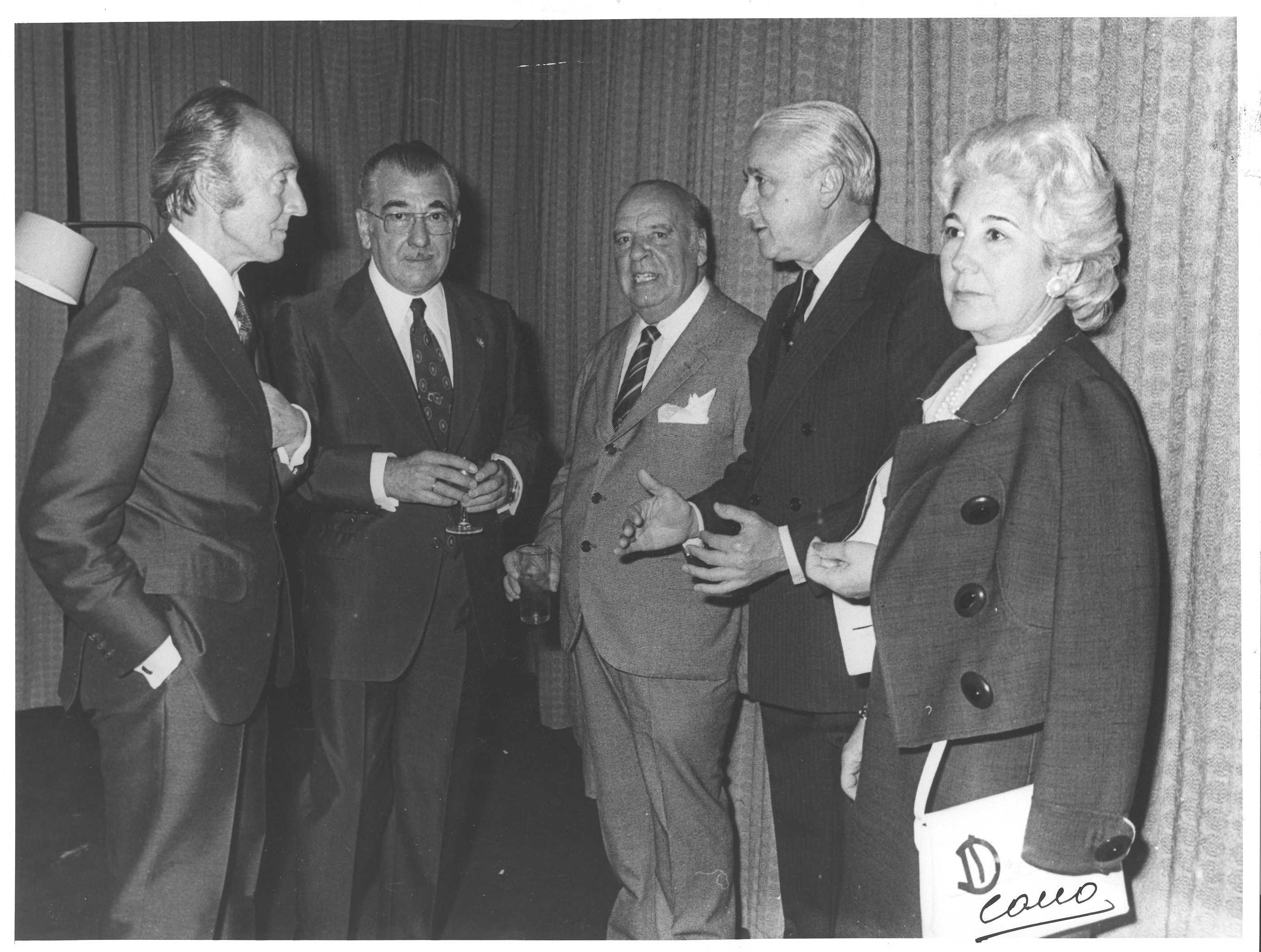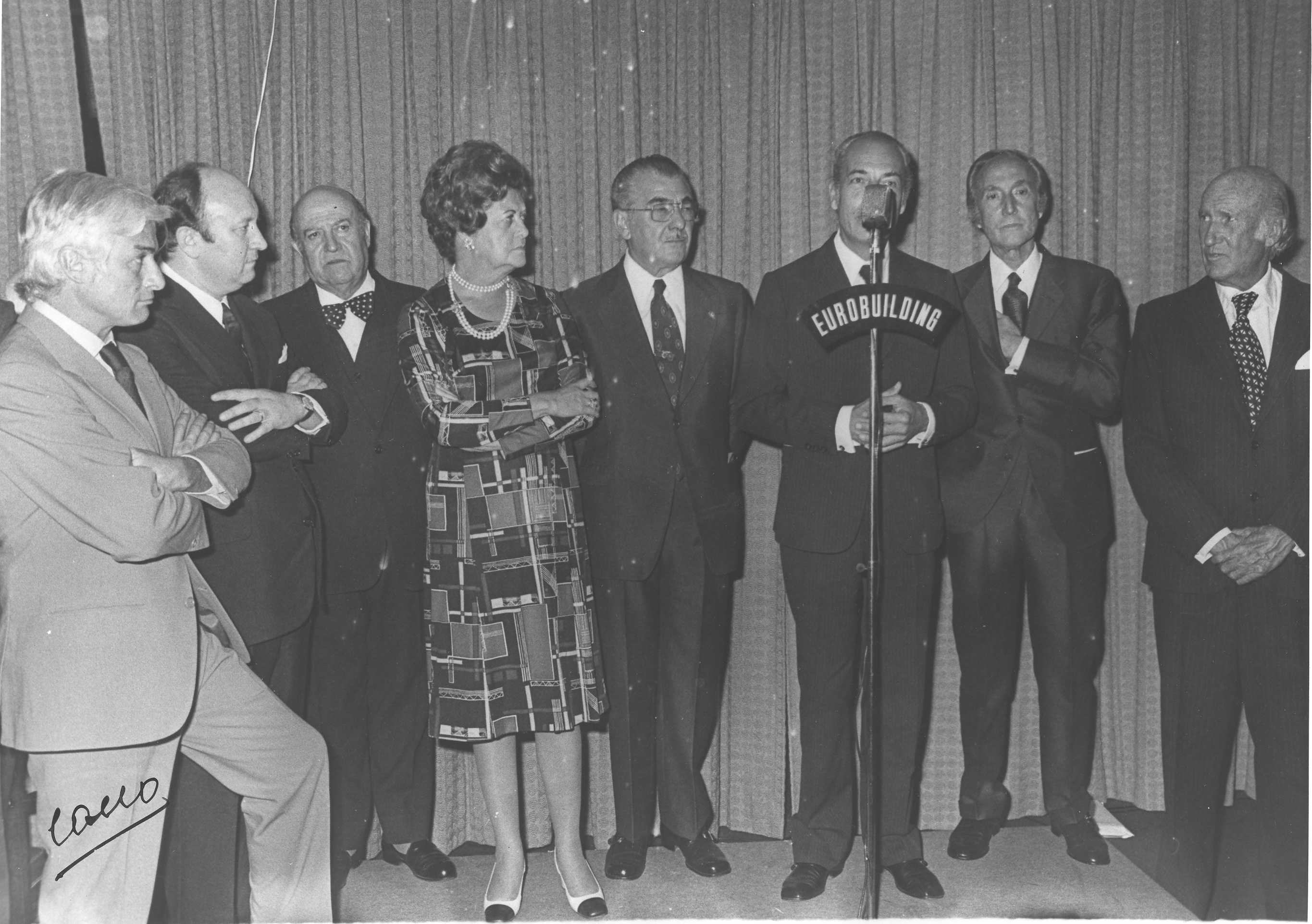 Fotografía de diferentes asistentes durante las celebraciones de la Feria de San Isidro de 1973, a donde viajaba una delegación vasca para la promoción de la Costa Vasca