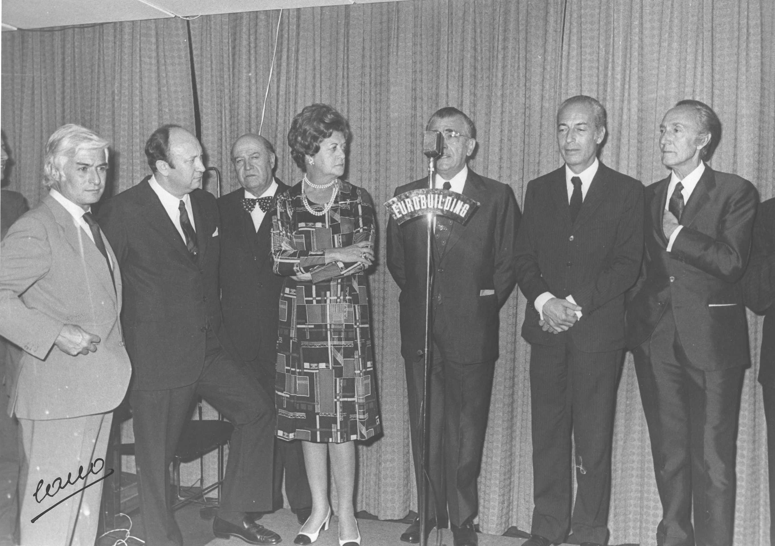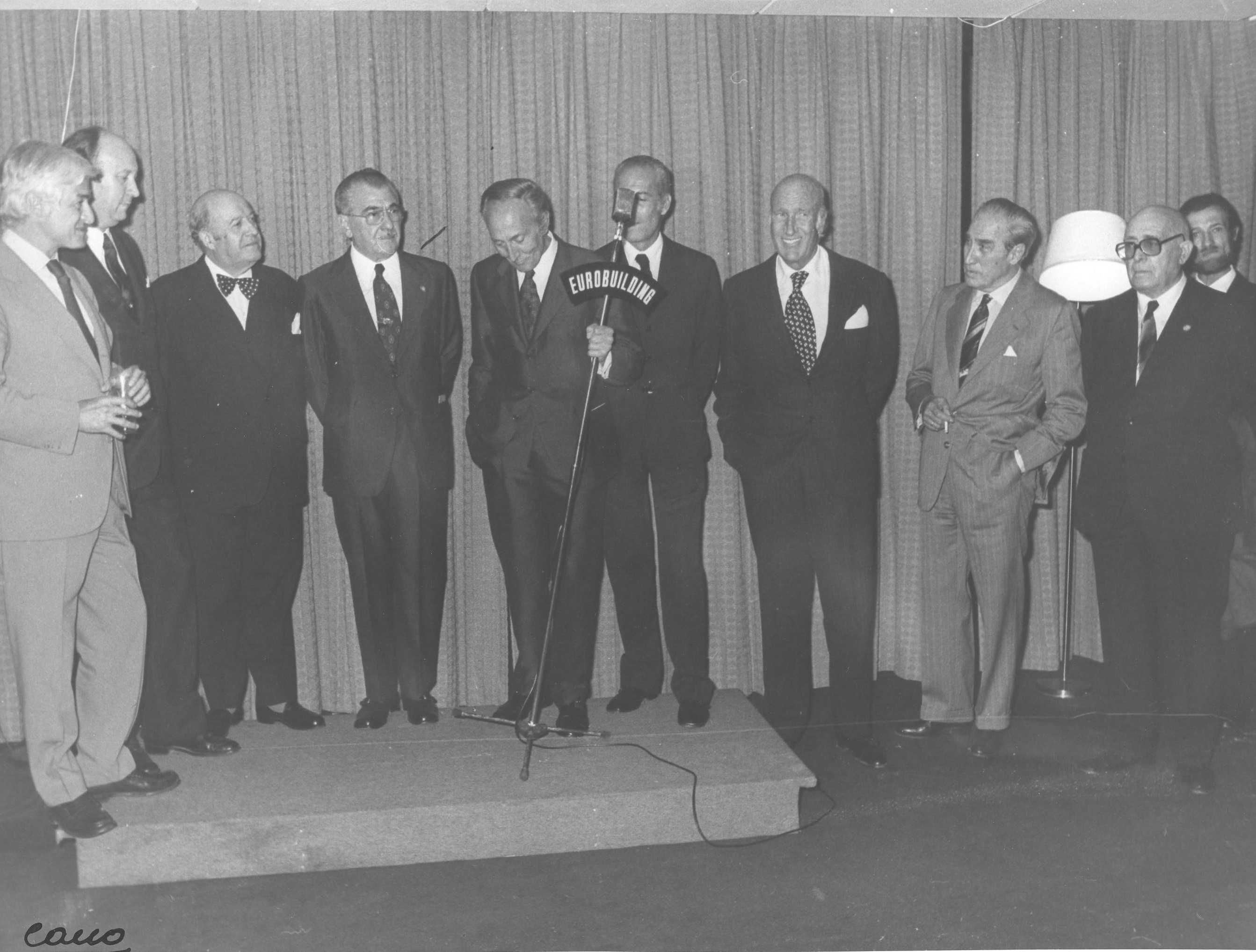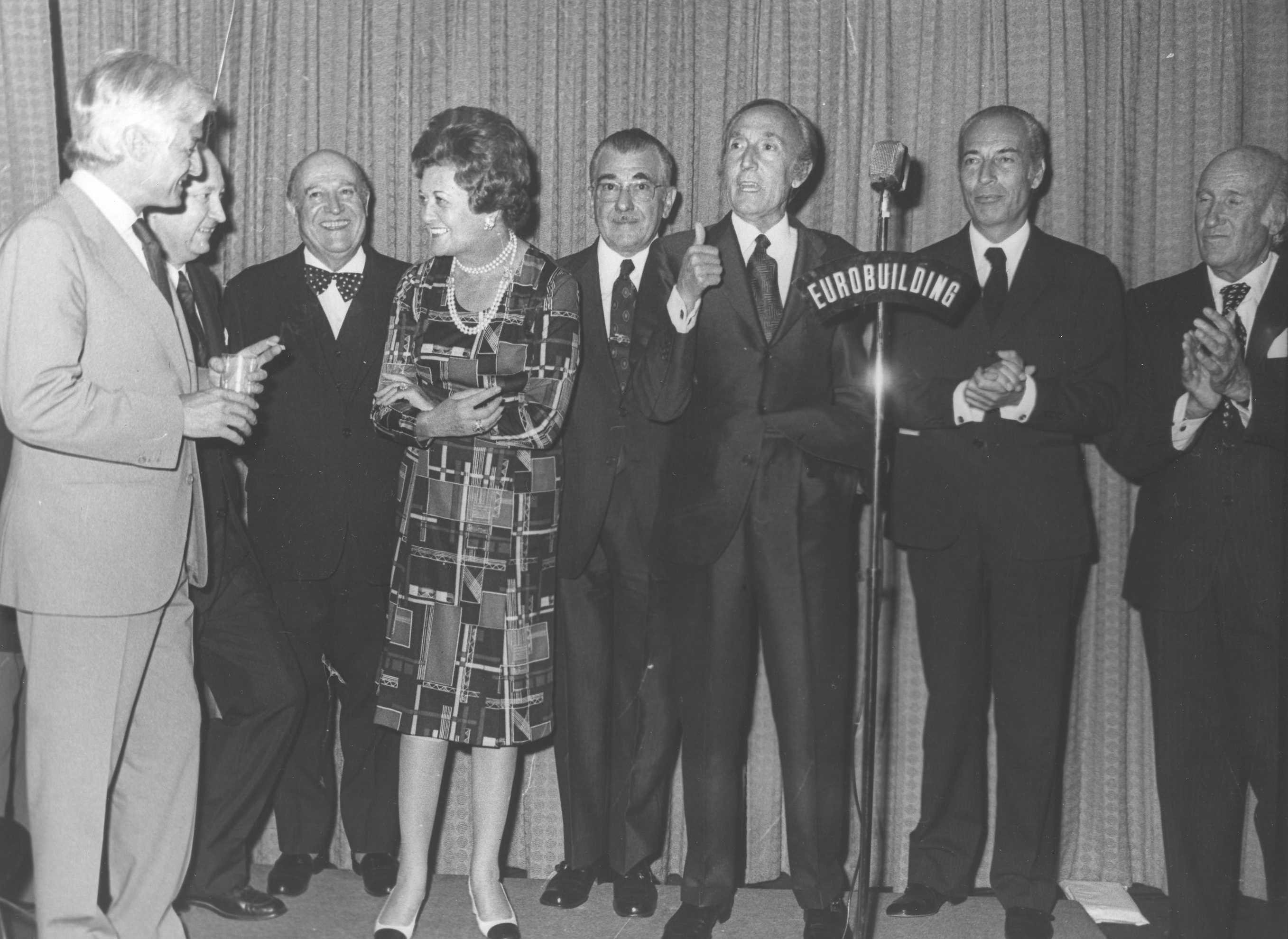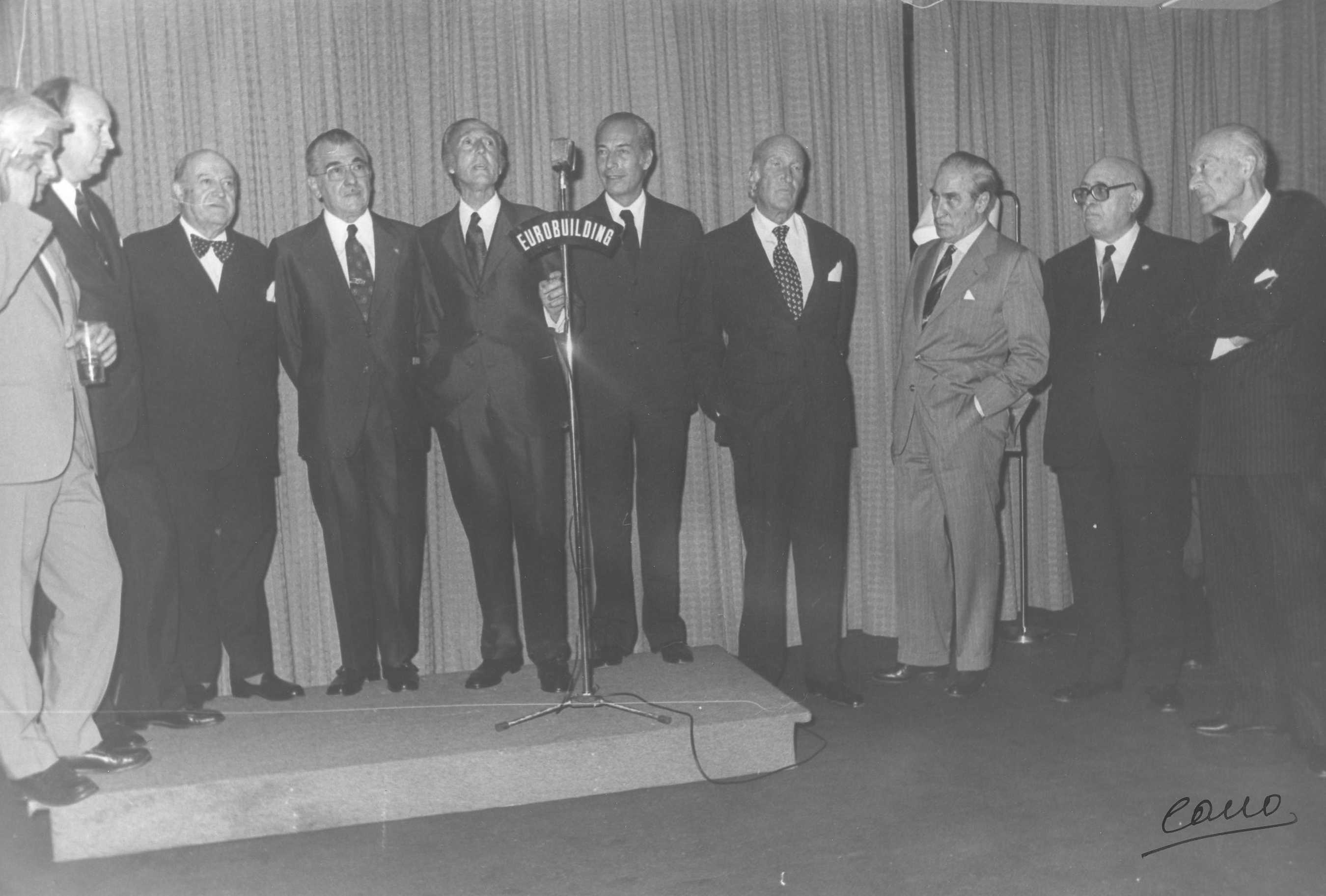 Fotografía de diferentes asistentes durante las celebraciones de la Feria de San Isidro de 1973, a donde viajaba una delegación vasca para la promoción de la Costa Vasca