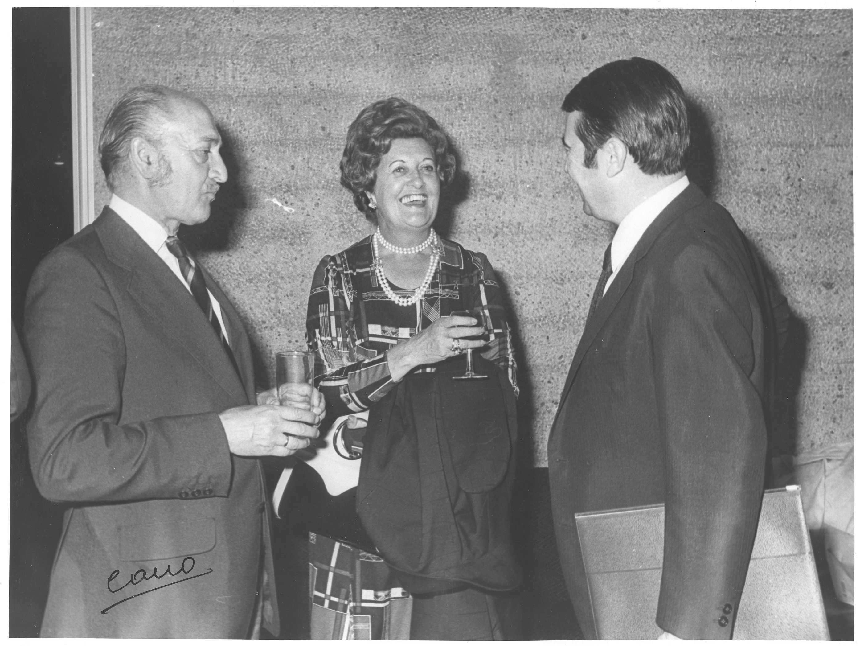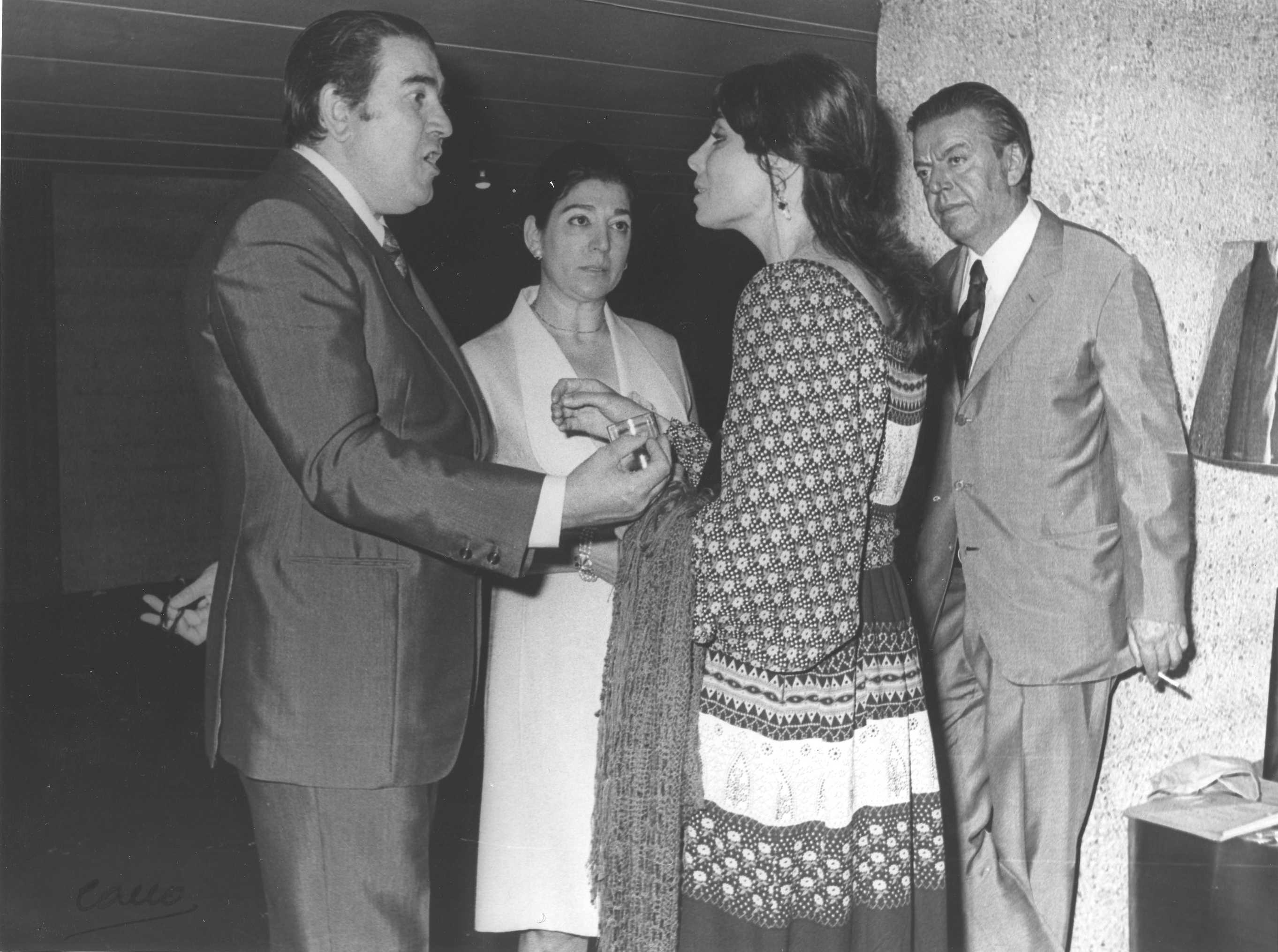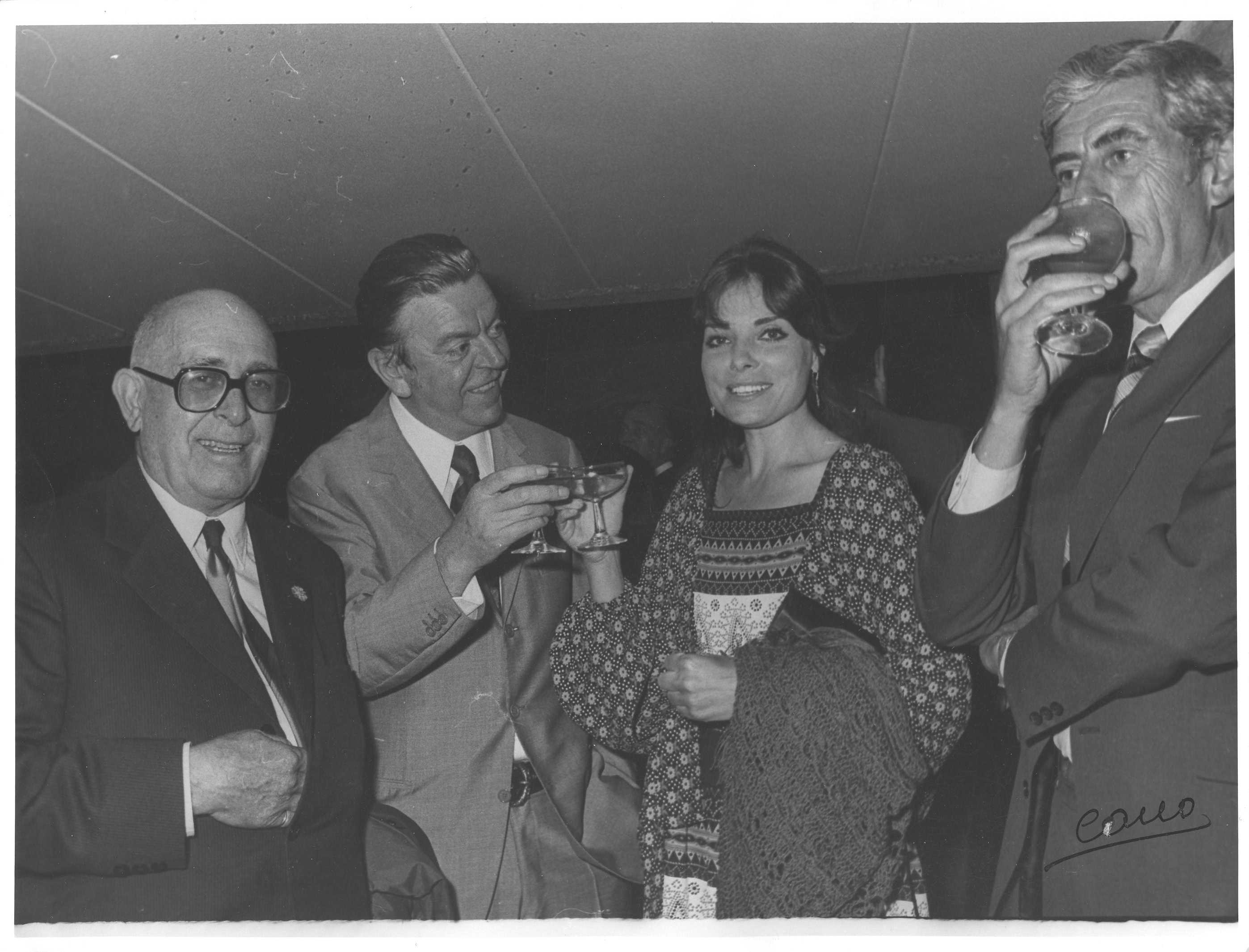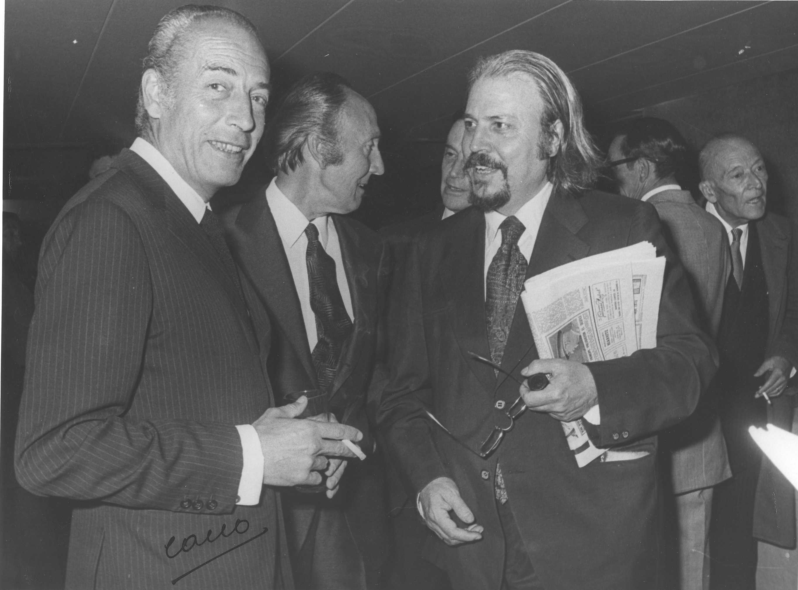 Fotografía de diferentes asistentes durante las celebraciones de la Feria de San Isidro de 1973, a donde viajaba una delegación vasca para la promoción de la Costa Vasca