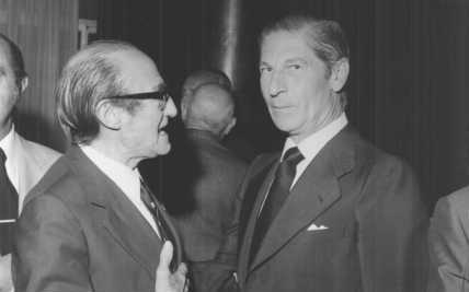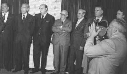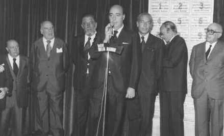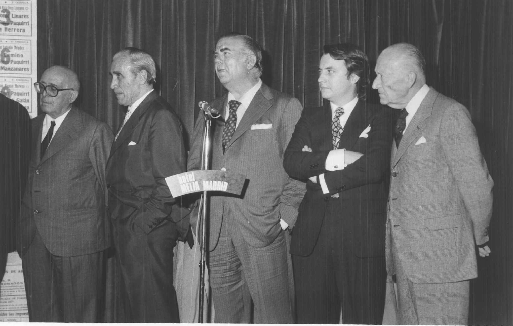 Fotografía de la presentación de la Feria de San Isidro de 1976 en el Hotel Meliá de Madrid en la que aparece Fernando de Otazu