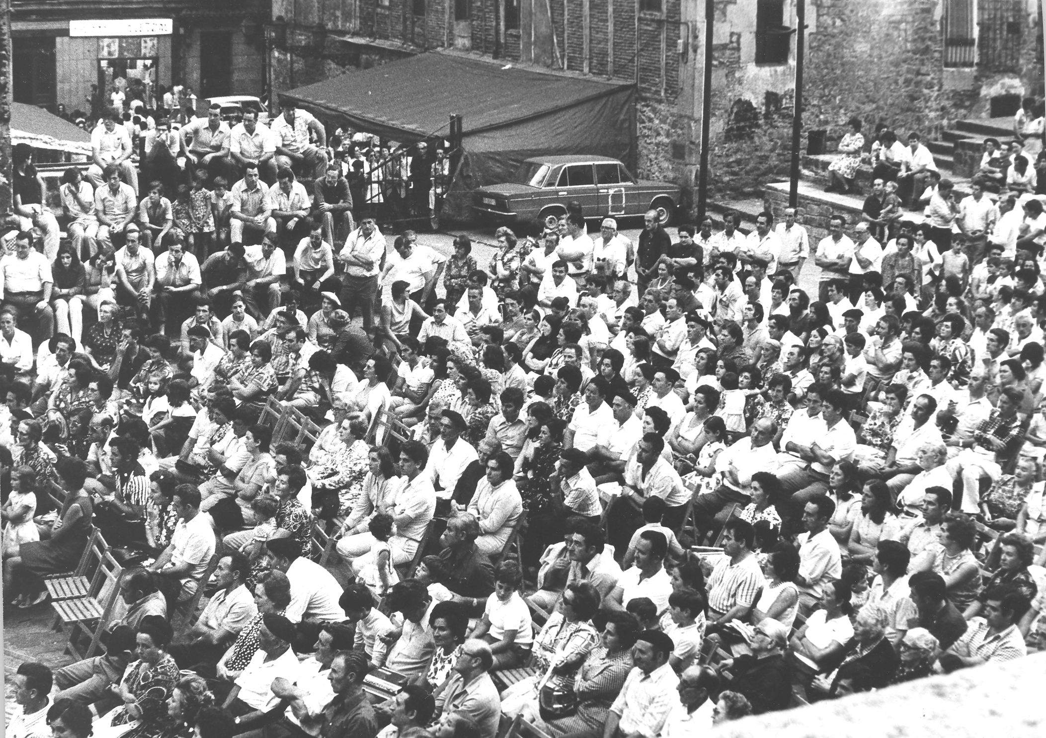 Fotografía del público asistente a un Festival Internacional de Folklore en la Plaza de la Trinidad