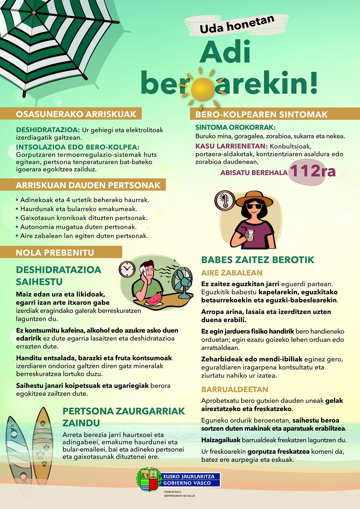 Beroaren aurrean egin beharrekoak (Eusko Jaurlaritzaren kartela)
