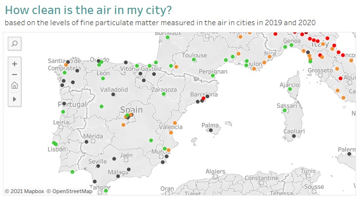 Europako 323 hiritako 2,5 mikra (PM2,5) baino gutxiagoko diametroa duten partikula esekien datuak biltzen dituen bisorea argitaratu berri du Europako Ingurumen Agentziak (AEMA). Partikula horiek pertsonen osasunerako kaltegarrienak dira; izan ere, arnastu eta arnas sisteman sar daitezke eta aurreko patologiak areagotu ditzakete.