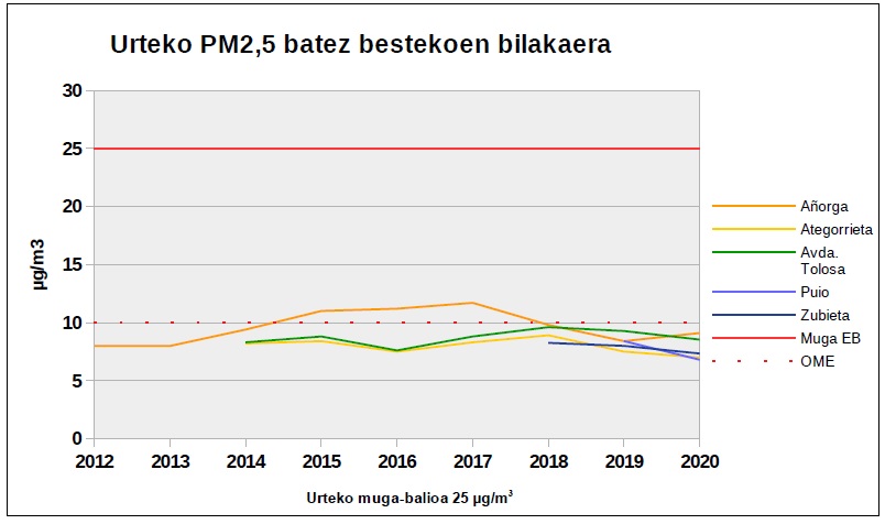 Partikula finei dagokienez, horien urteko batez bestekoak maila baxuetan daude, eta OMEren gomendioak betetzen dira hiriko estazio guztietan 2018tik.