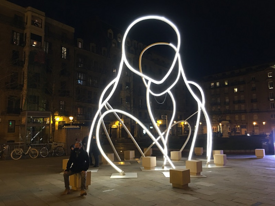 Este año, además, se suma a esta iniciativa la escultura El Abrazo ubicada en la Plaza Ramón Labayen, una obra en recuerdo de las víctimas del coronavirus.