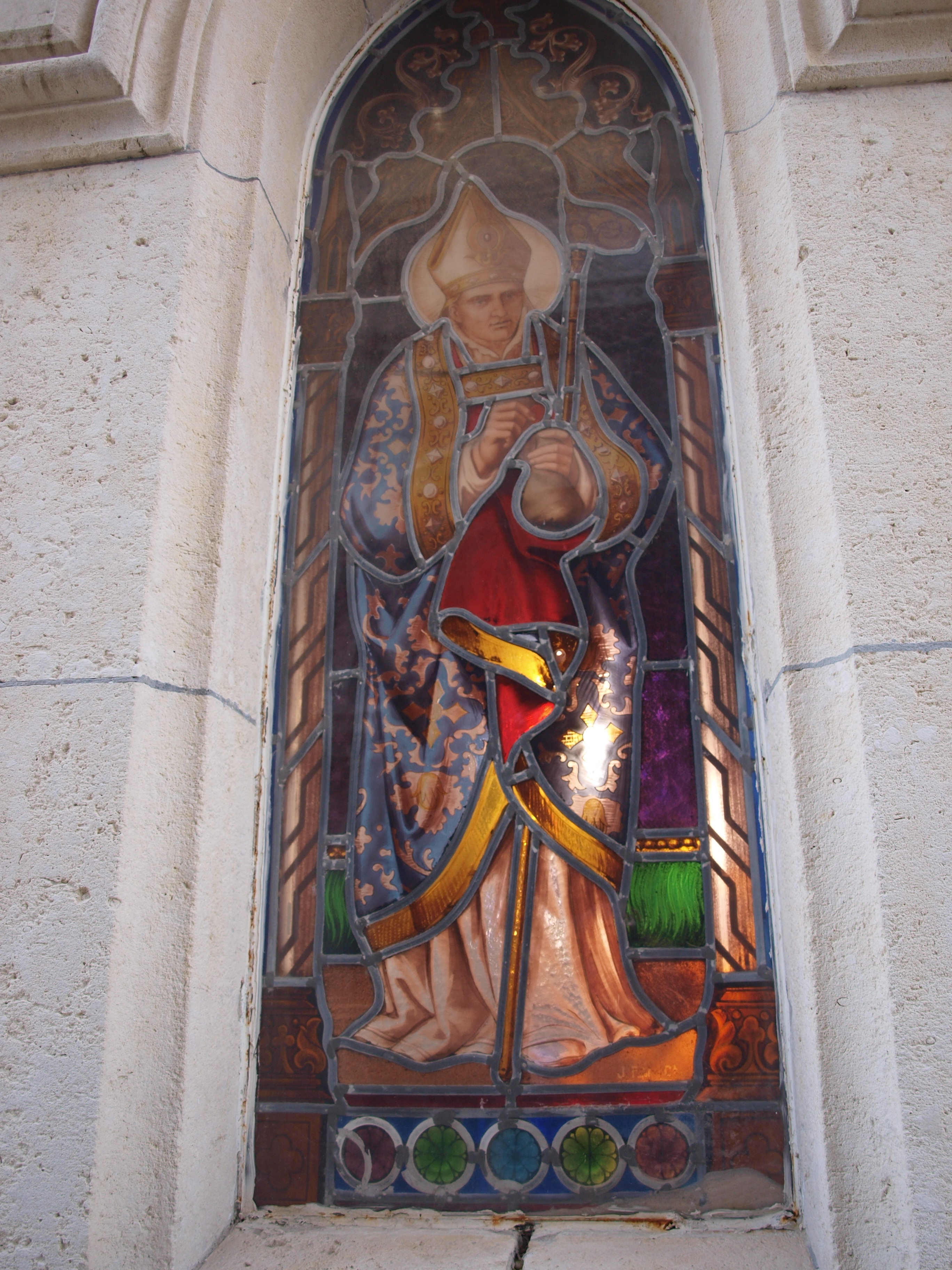 Kapera neogotikoa, bereziki bakuna den bertsio baten barruan. Kutsu erromanikoa duten elementuak ere baditu. Santuen galeria eder bat agertzen zaigu beruneztatutako beirategi multzo honetan.