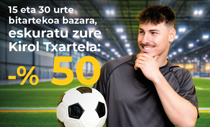 A partir del 1 de septiembre de 2025, las personas abonadas (titulares) a la Kirol Txartela de entre 15 y 30 años (nacidas entre los años 1995 y 2010) podrán solicitar la bonificación del 50% de su cuota gracias al acuerdo con Rural Kutxa.